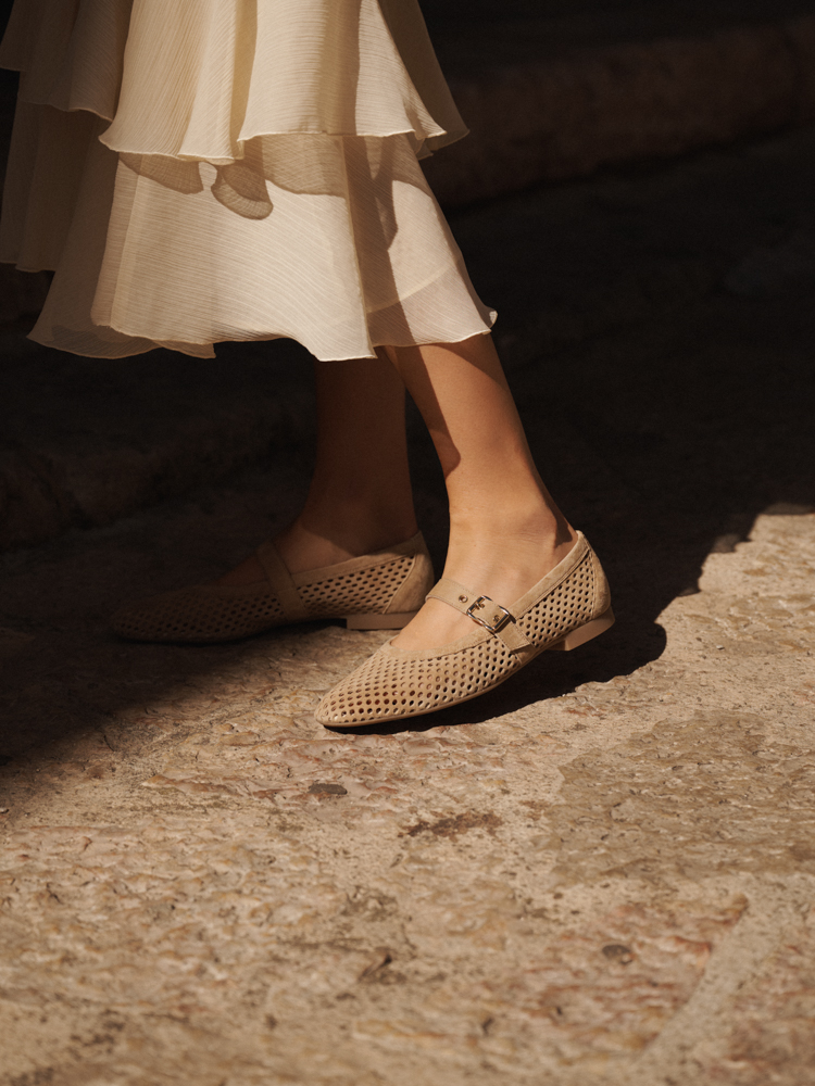 Featuring a strap across the instep and woven details, these ballet flats from Paul Green combine fashion-forward style with exceptional comfort. The soft leather in a decorative woven design ensures a light and summery look, while the strap across the instep provides excellent support and adds a fashionable touch. Thanks to their flexible outsole and soft fit, these shoes guarantee comfort all day long, without compromising on style. This pair is perfect for casual outfits, city looks, and office attire. Enjoy this light and summery choice! Style begins with the right feeling – Paul Green shoes make every step a statement.
